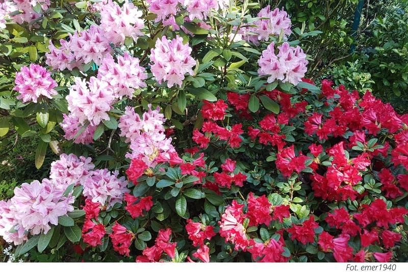 | Azalia japońska | Mały krzew o zimozielonych liściach, obsypujący się różnorodnymi kolorami kwiatów w czerwcu. | Różnorodne |